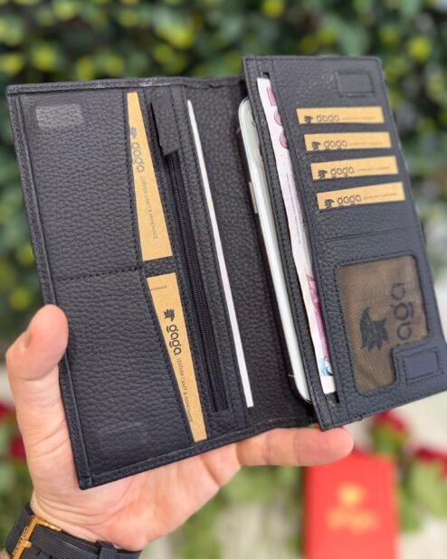 El Tutamaçlı Hakiki Deri Telefon Bölmeli Cüzdan Siyah 1028