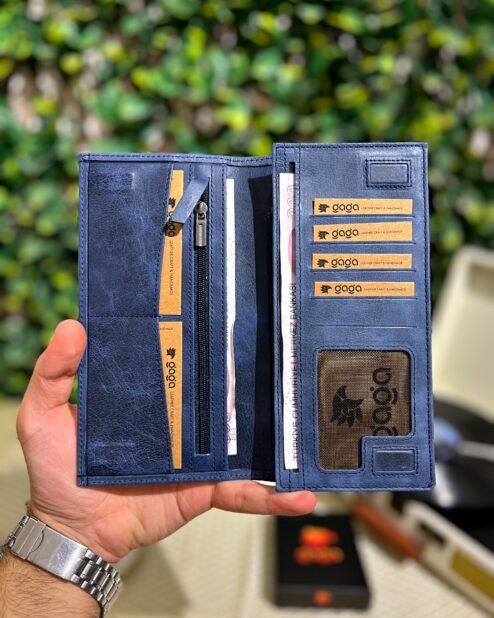Hakiki Deri Telefon Bölmeli Cüzdan El Tutamaçlı Mavi 1028