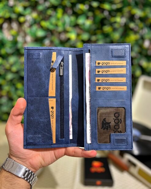 Mekanizmalı Cüzdan Hakiki Deri Mavi 1001