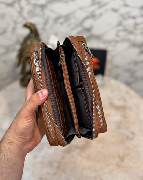Hakiki Deri Telefon Bölmeli Cüzdan El Tutamaçlı Fındık 1028