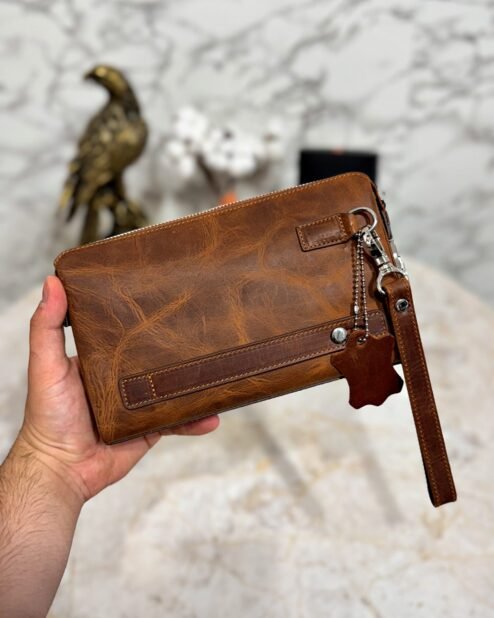 El Çantası Hakiki Deri Eskitme Tutamaçlı Fındık 1029