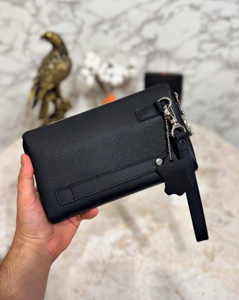 Şifreli El Çantası Hakiki Deri Siyah 1087