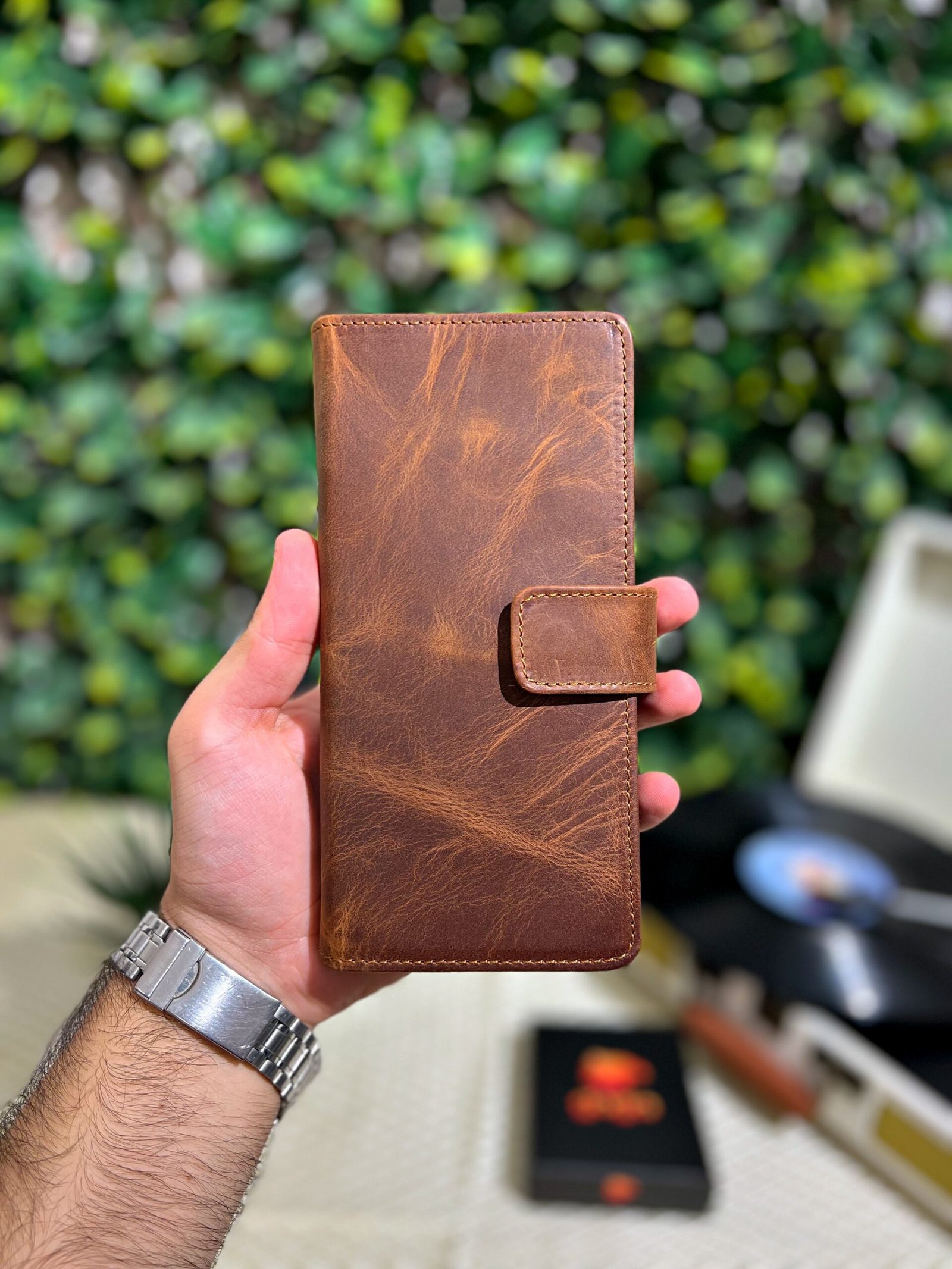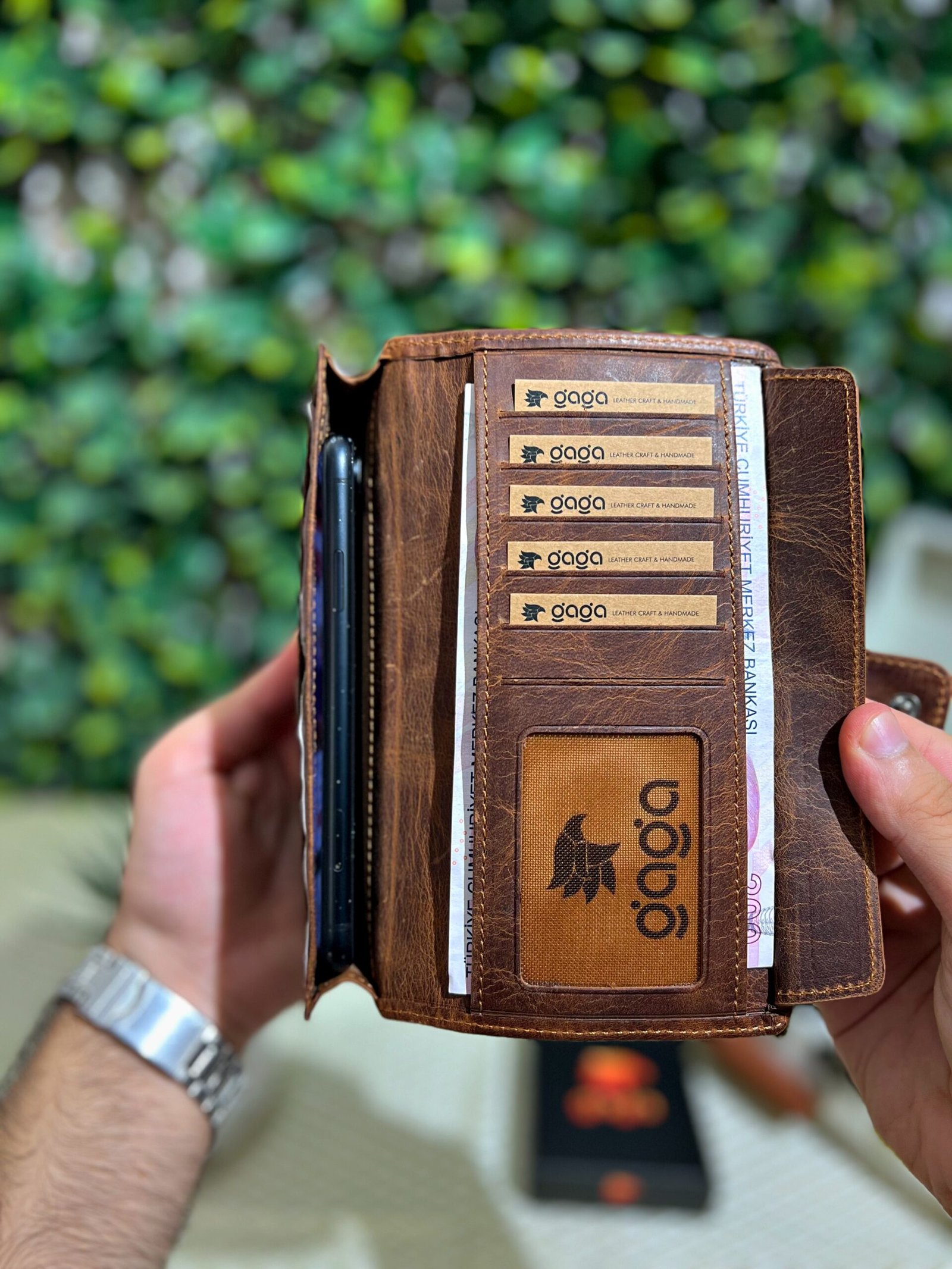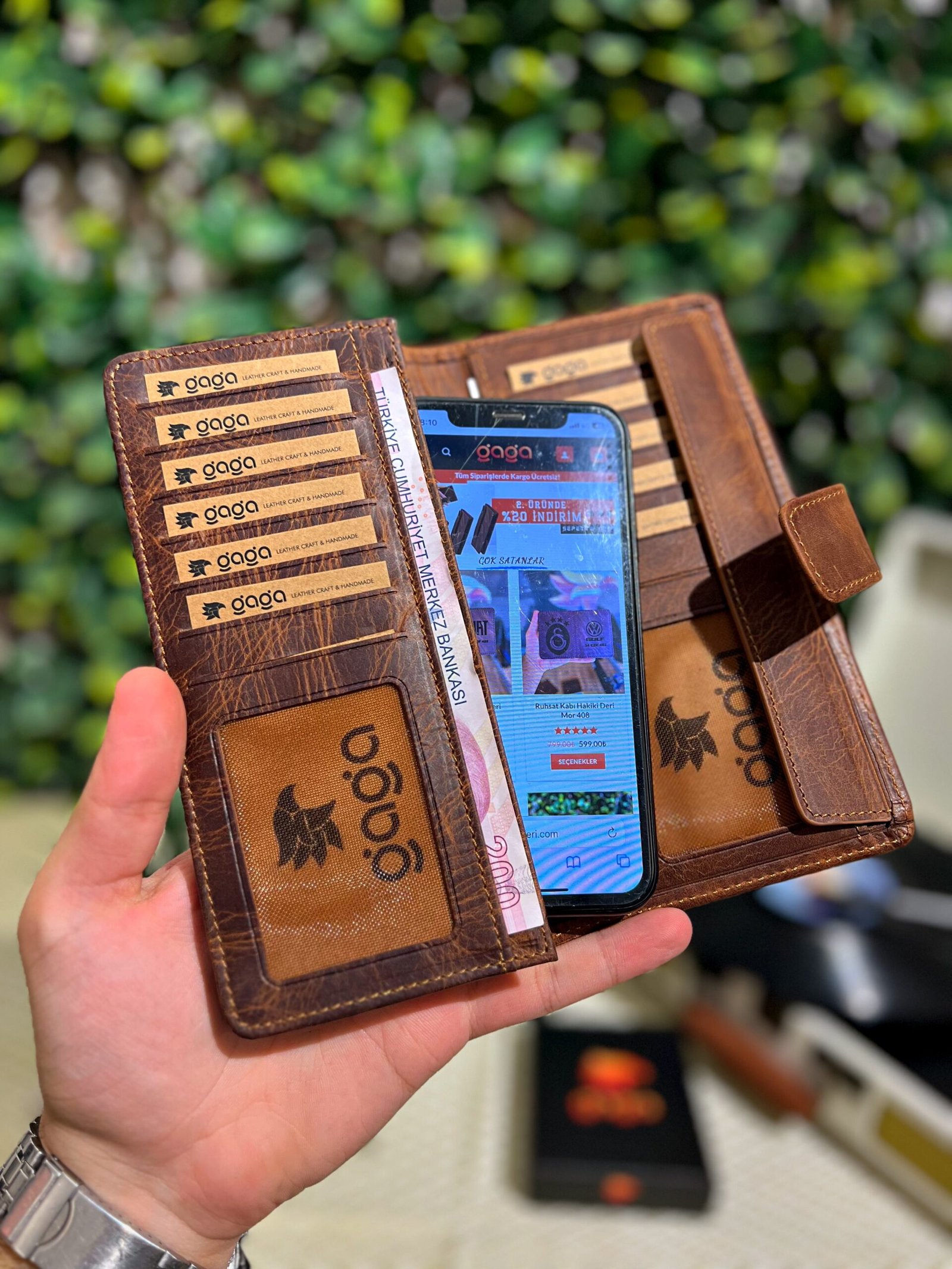 Çıtçıtlı Telefonlu Hakiki Deri Fındık Cüzdan 1005