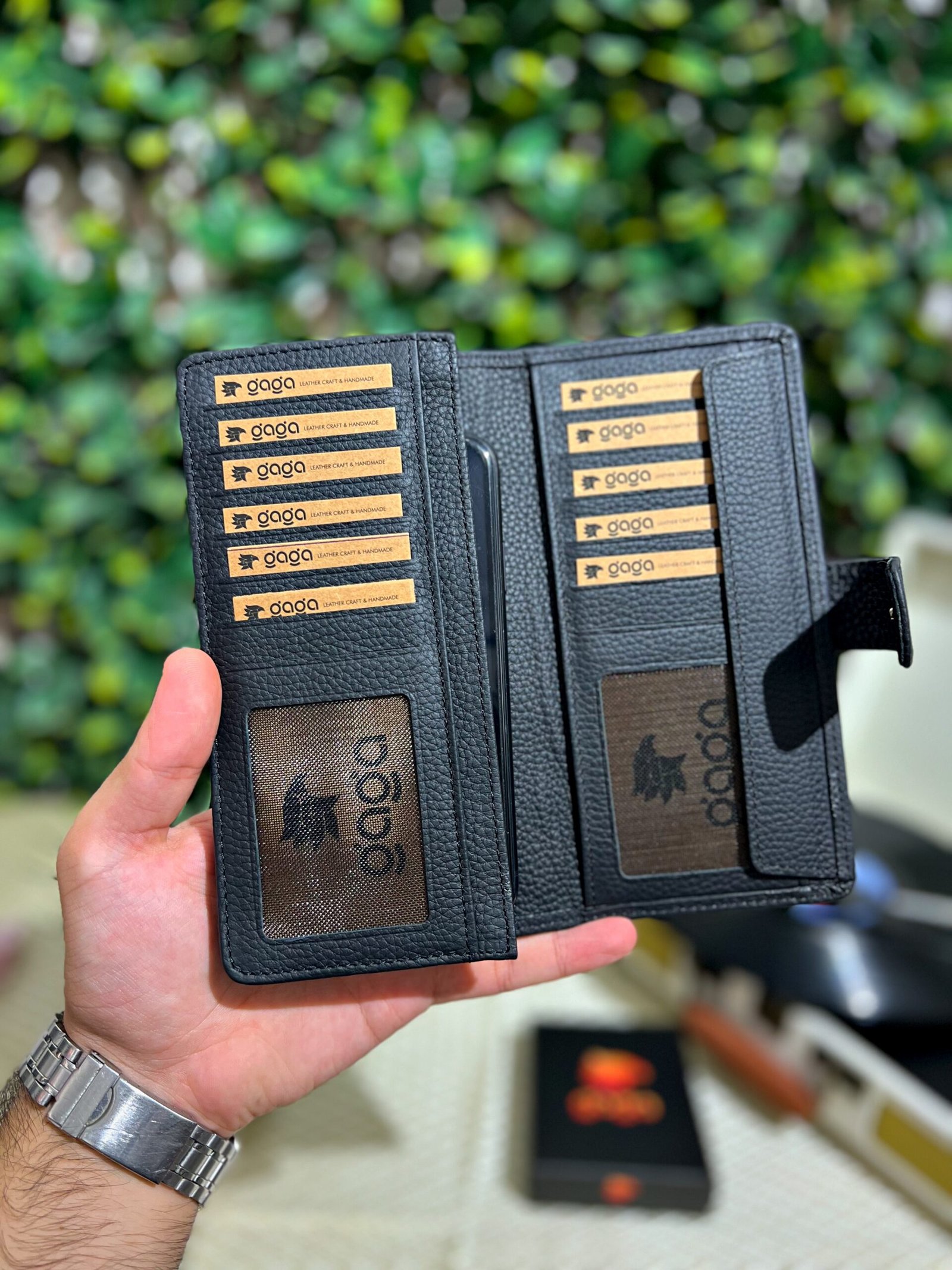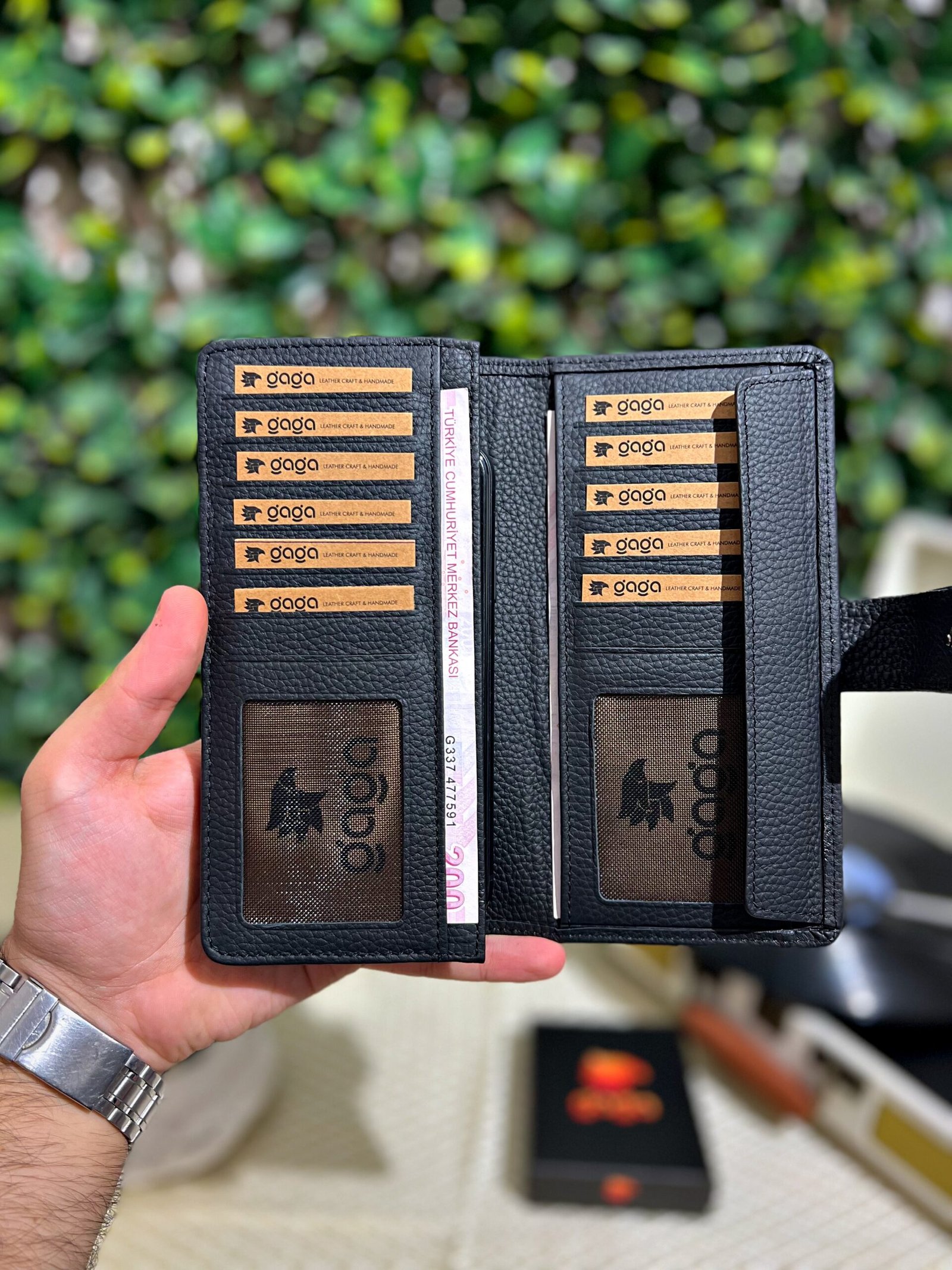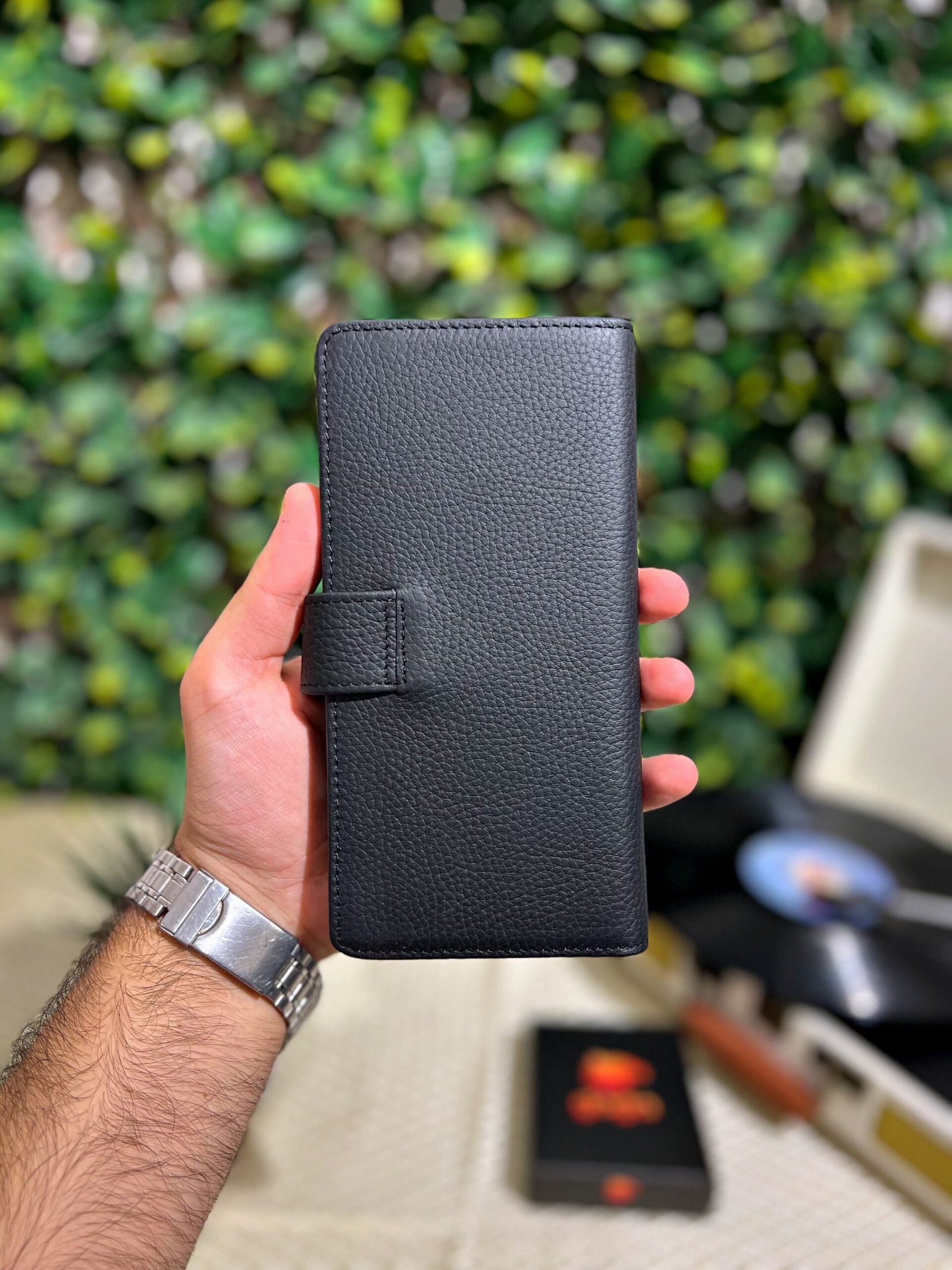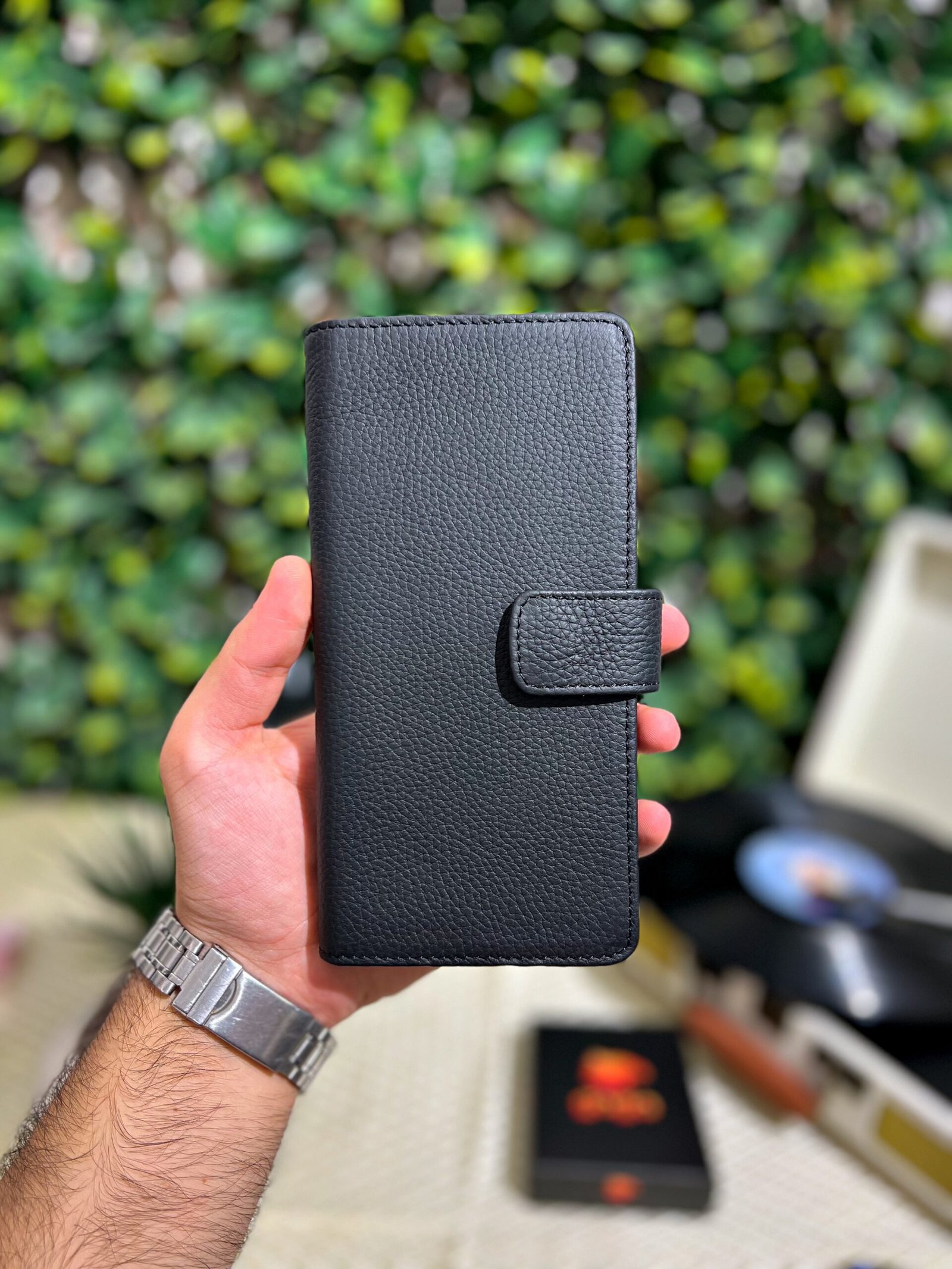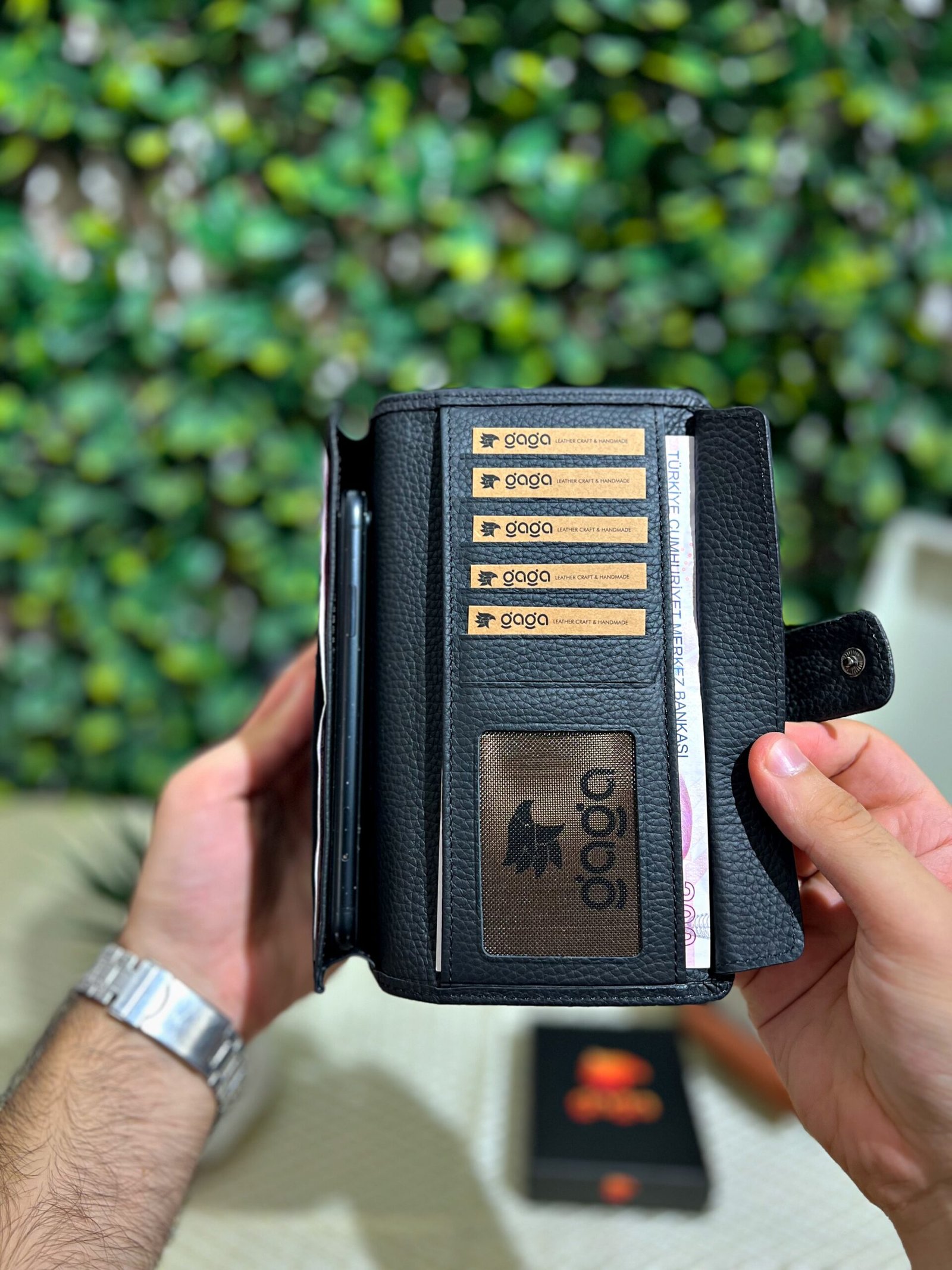 Çıtçıtlı Telefonlu Hakiki Deri Siyah Cüzdan 1005