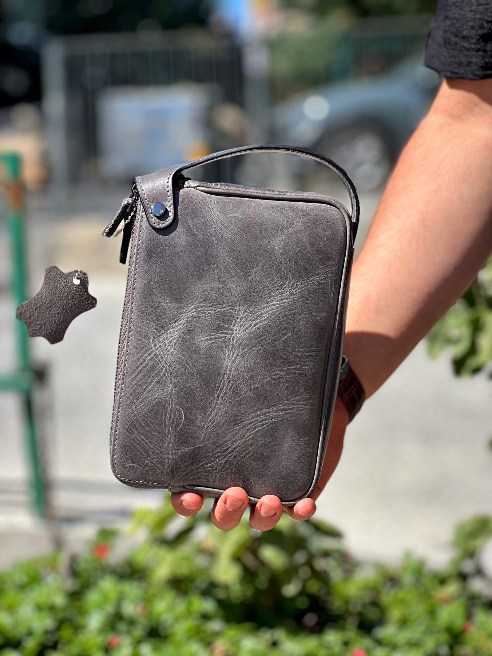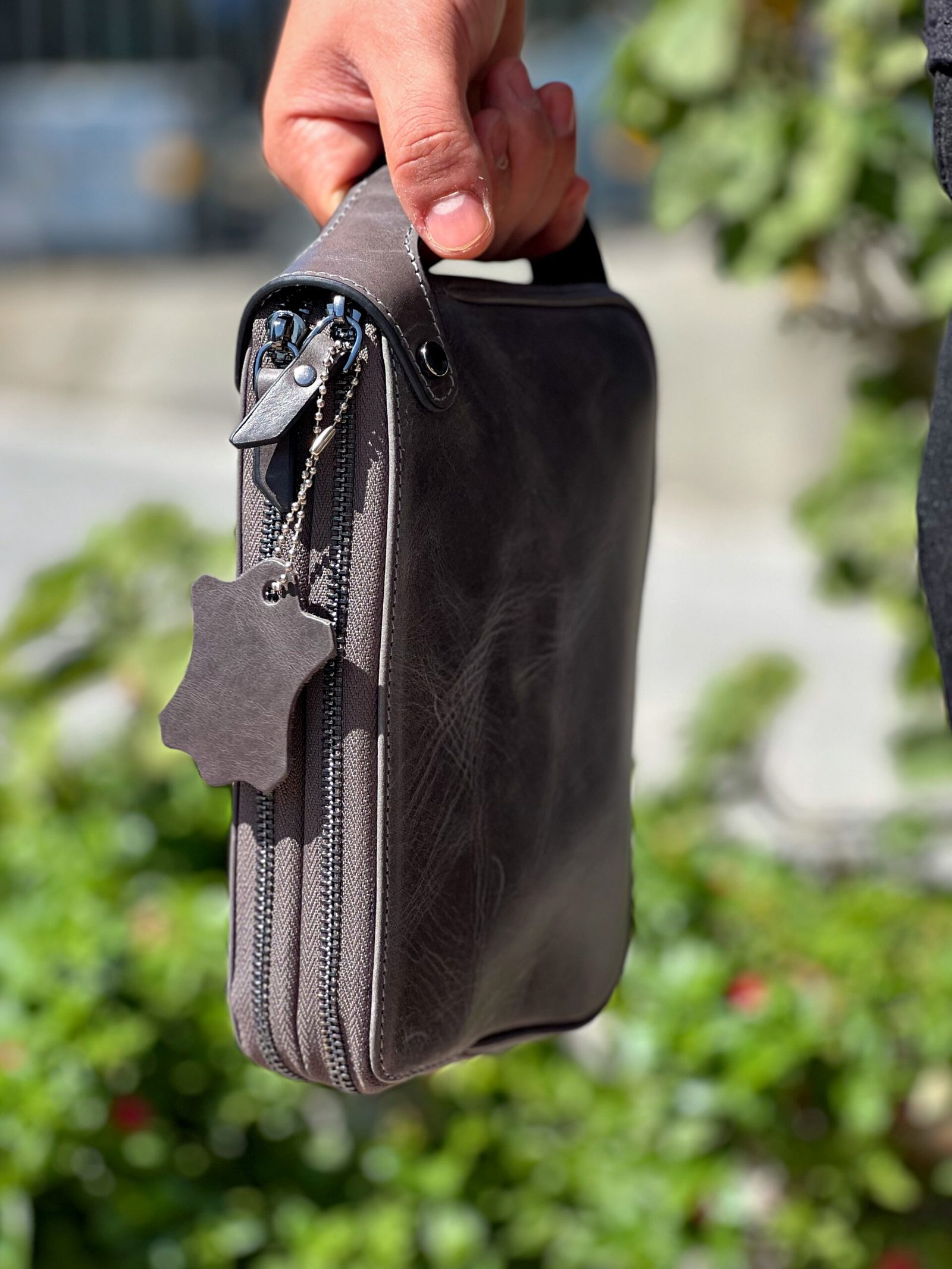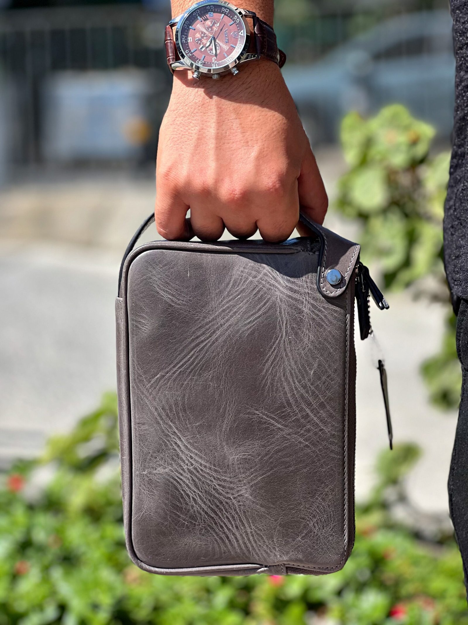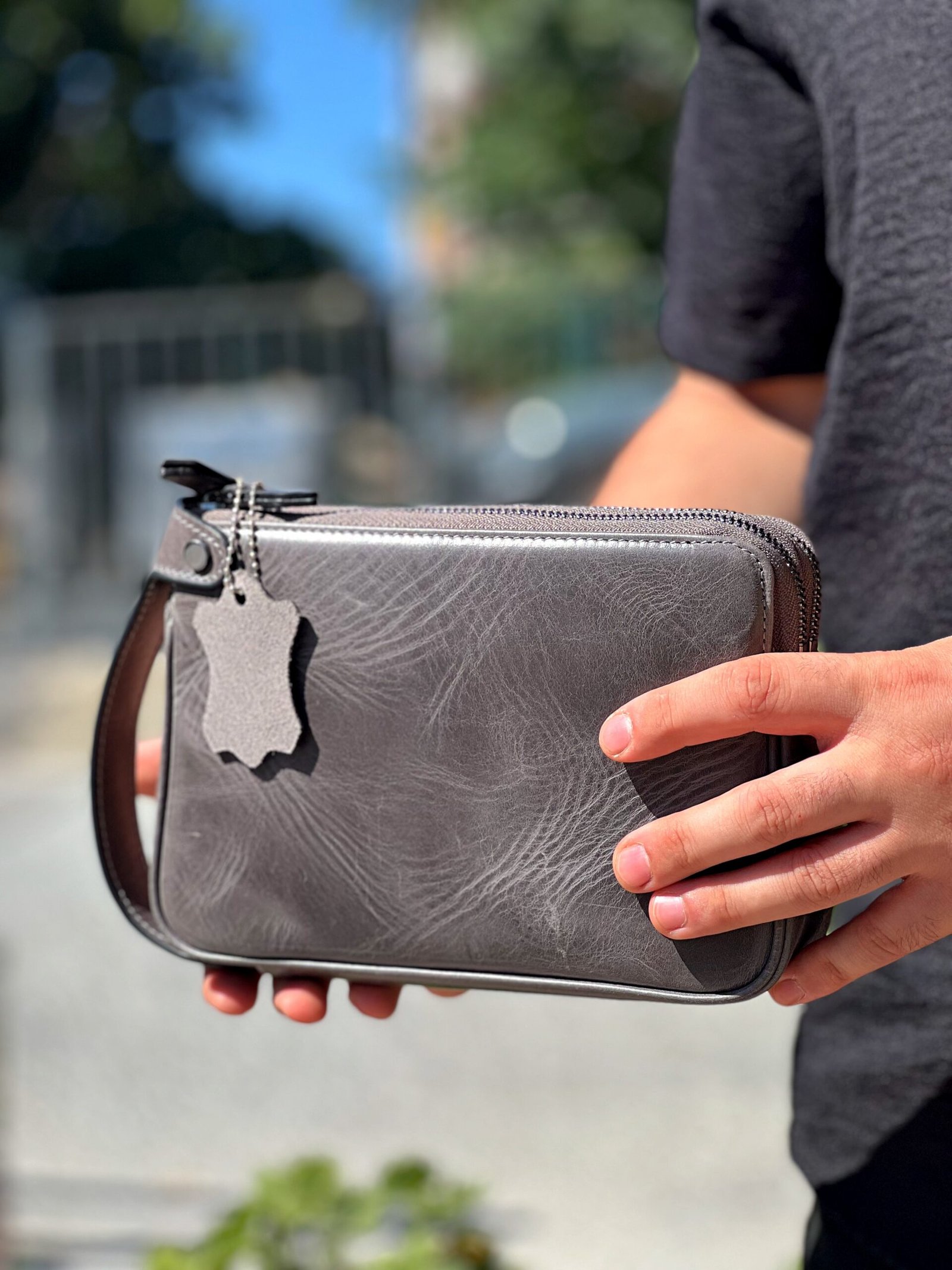 Dubai Hakiki Deri El Çantası Gri 101