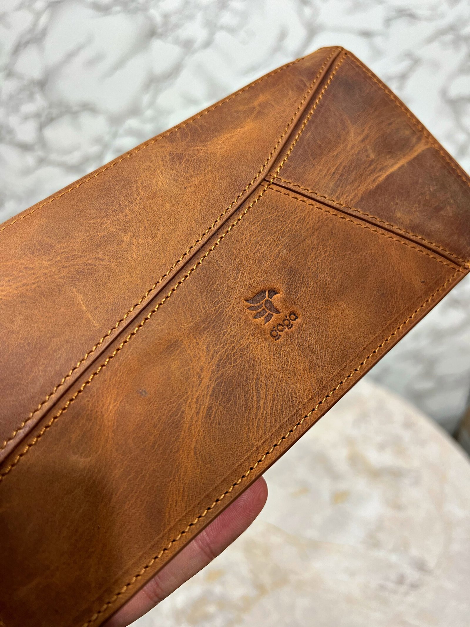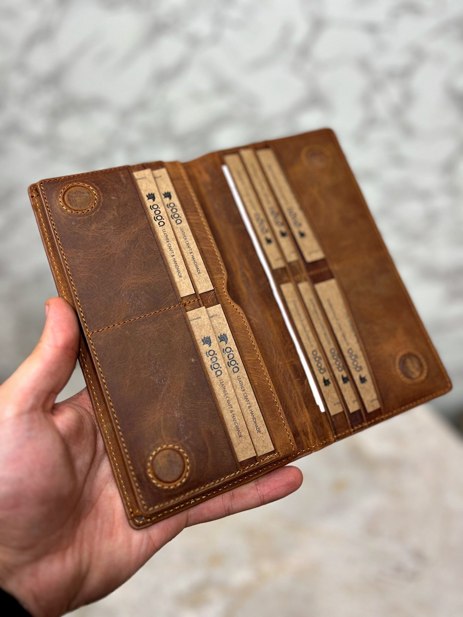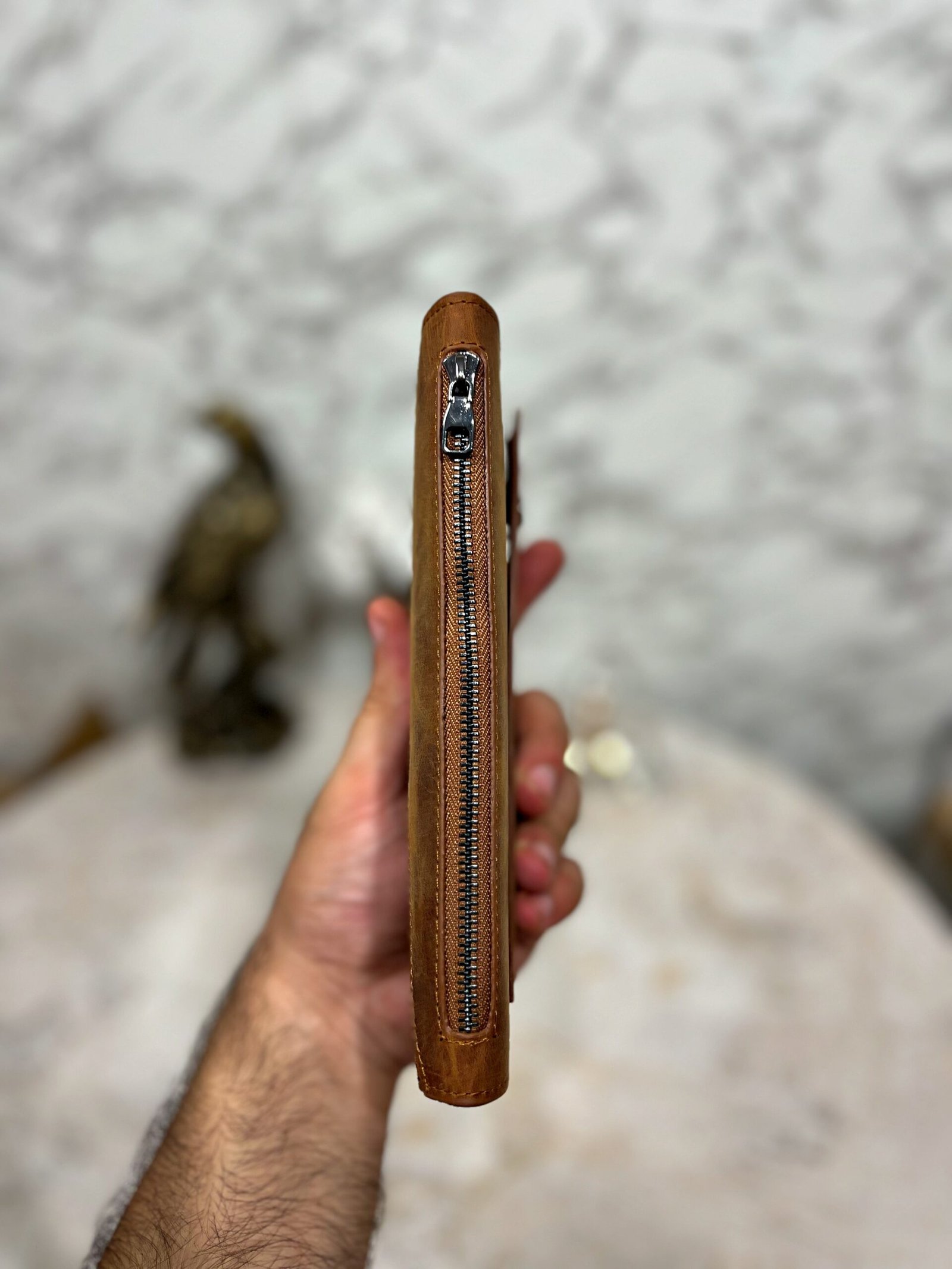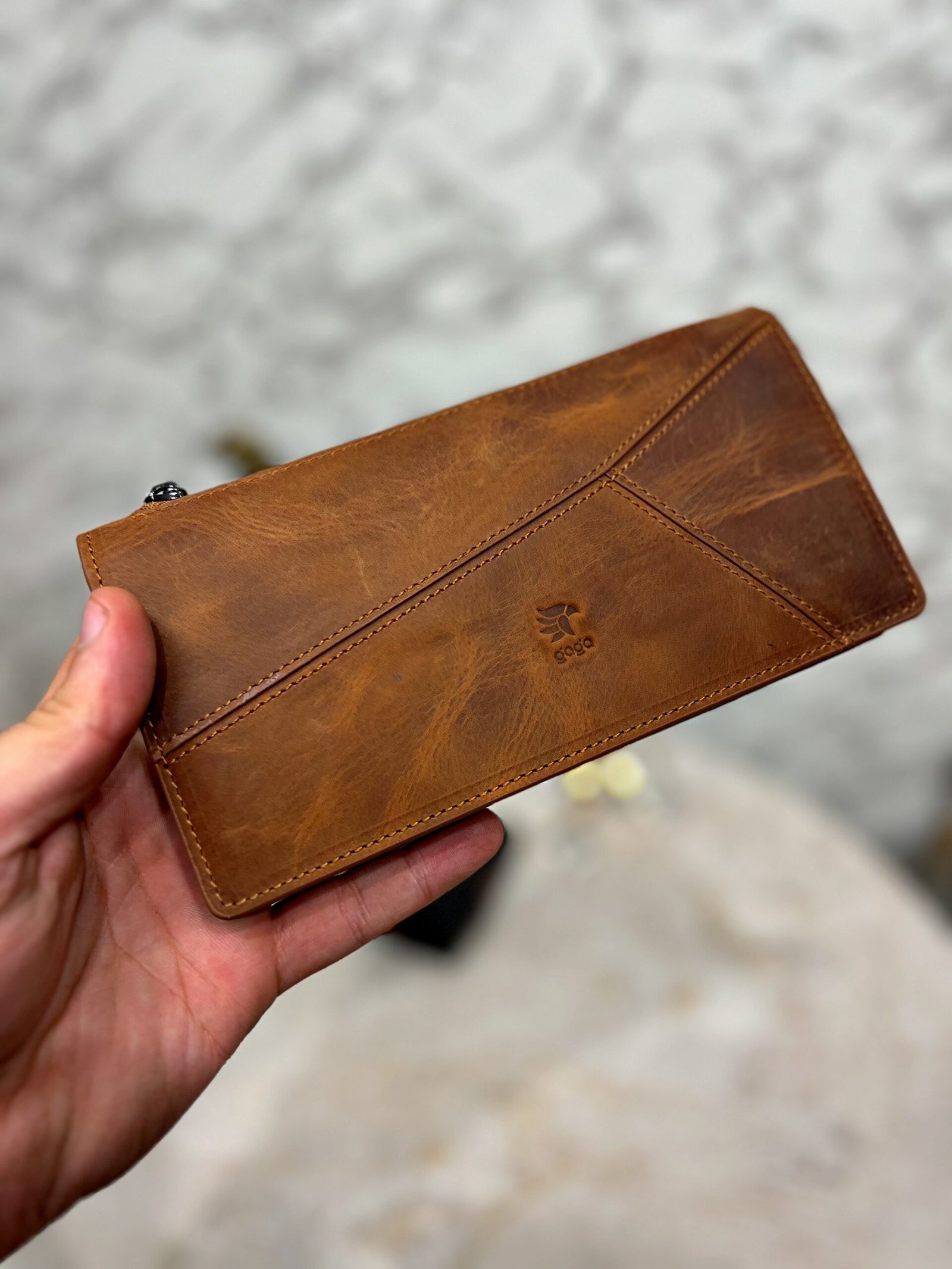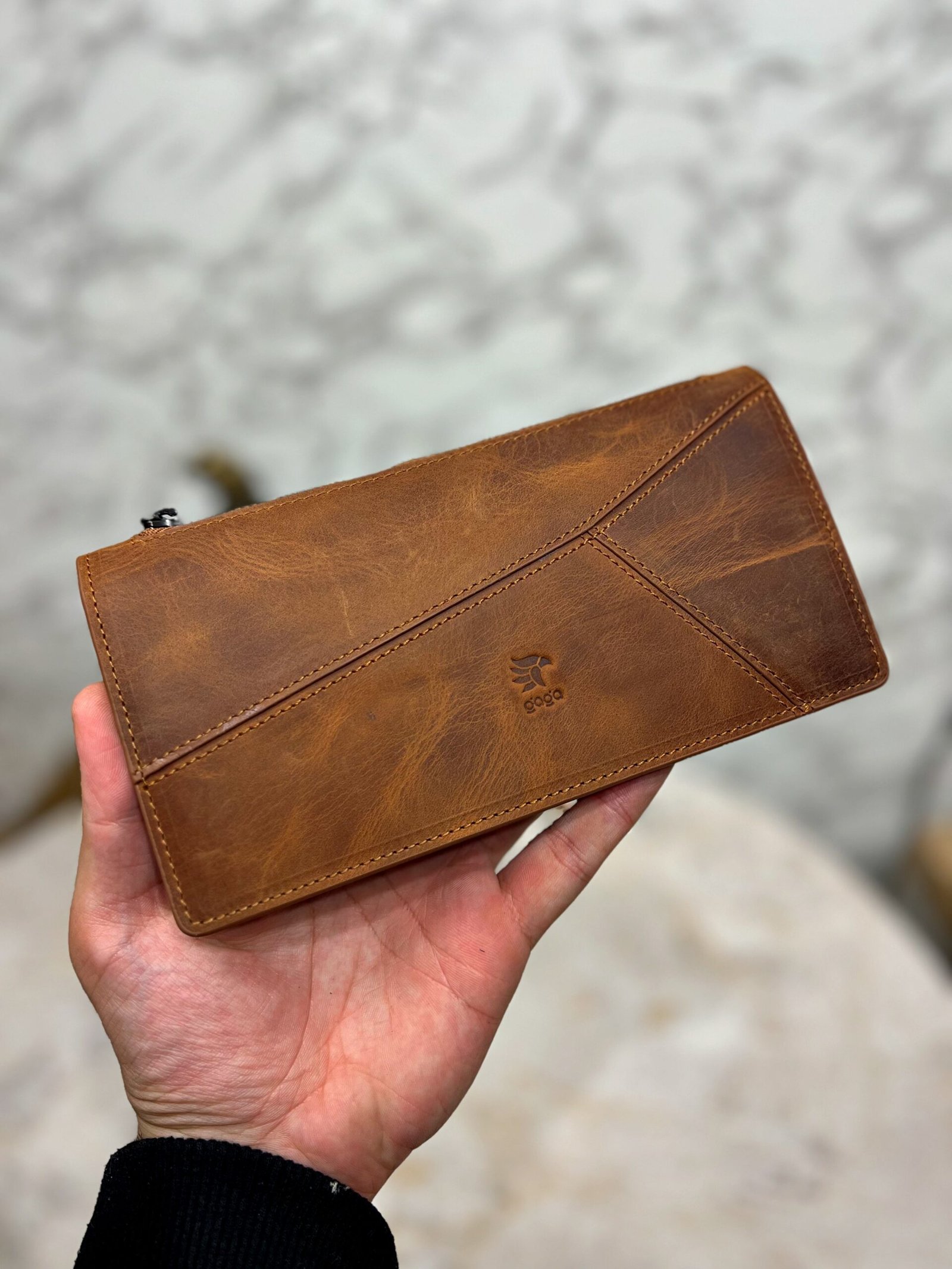 El Tutamaçlı Hakiki Deri Telefon Bölmeli Parçalı Cüzdan Fındık