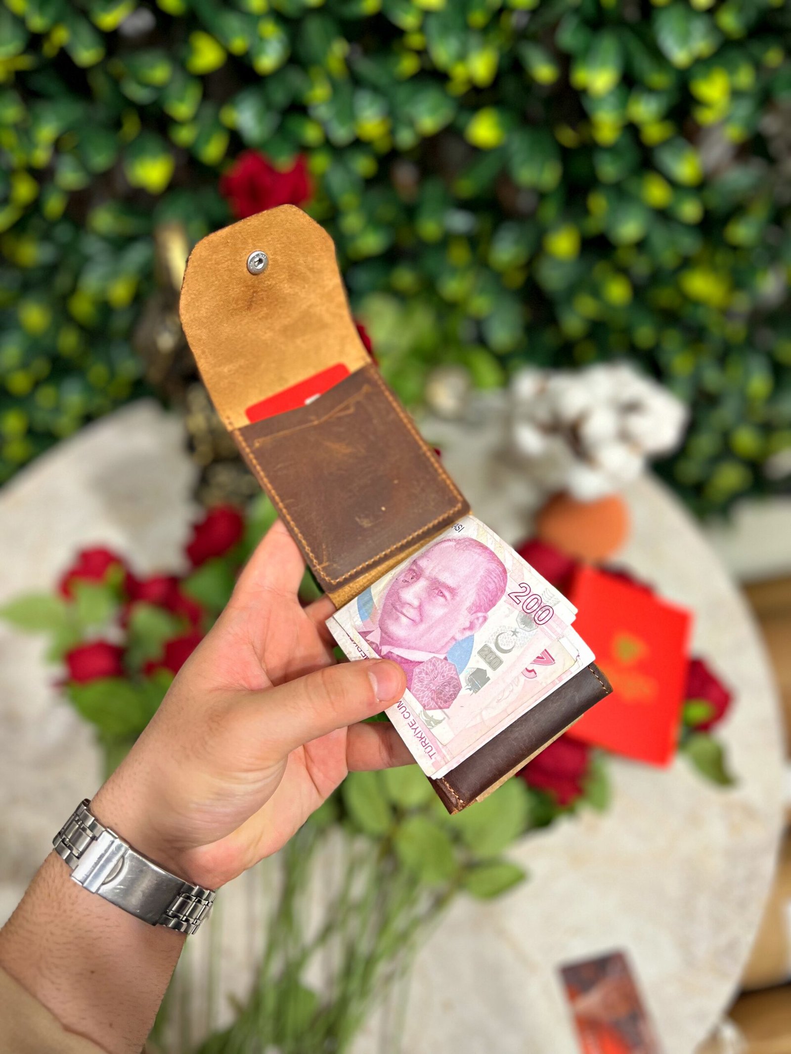 Ürün, %100 birinci sınıf hakiki dana derisinden üretilmiştir. Bu sayede hem dayanıklı hem de uzun ömürlü bir kullanım sunar. Hakiki deri zamanla form kazanarak kendine özgü bir görünüm oluşturur. Bu da her cüzdanın zaman içinde kullanıcıya özel bir karakter kazanmasını sağlar. Günlük kullanımda yıpranmaya karşı dirençlidir ve uzun süre ilk günkü performansını korur.