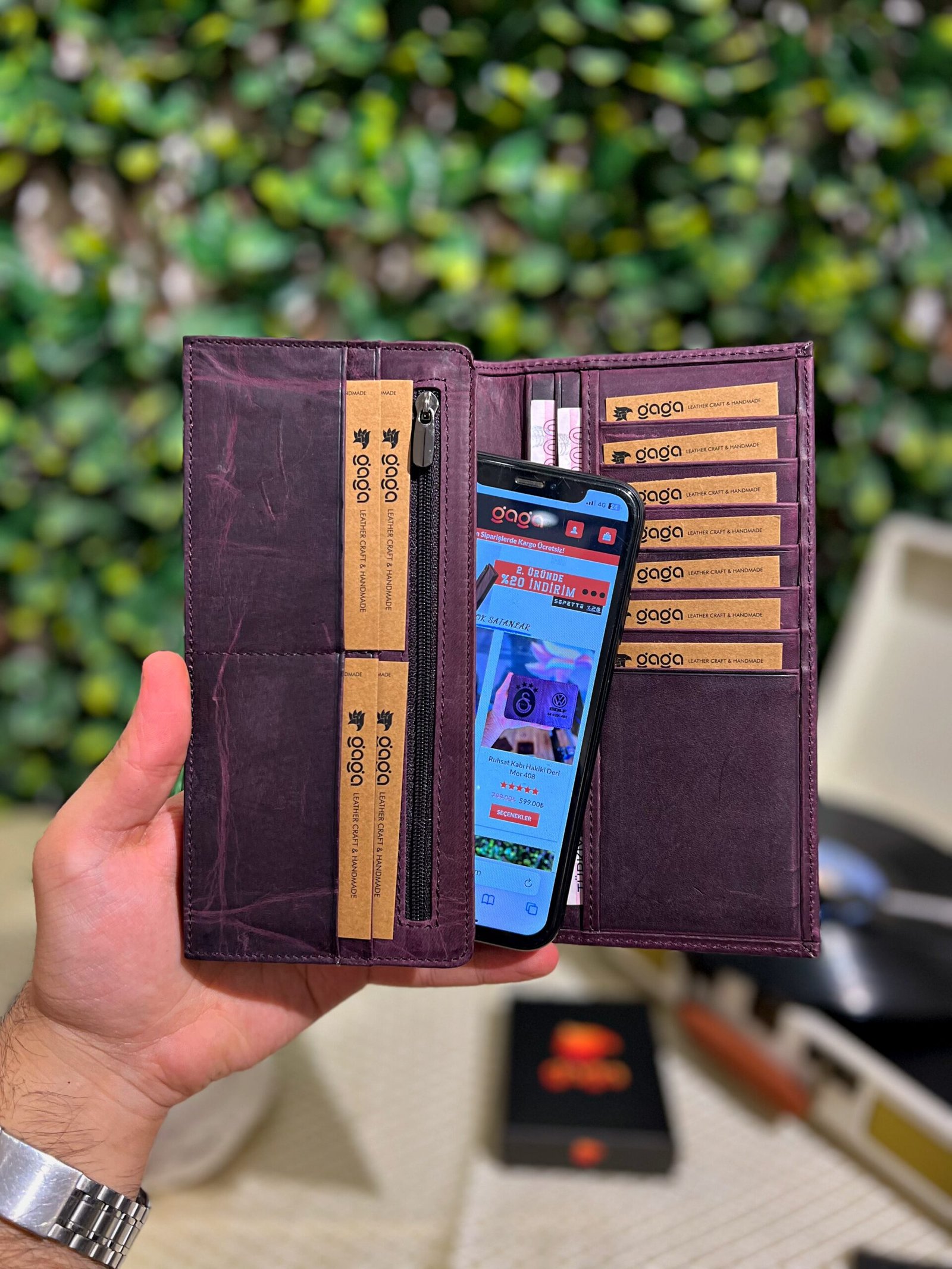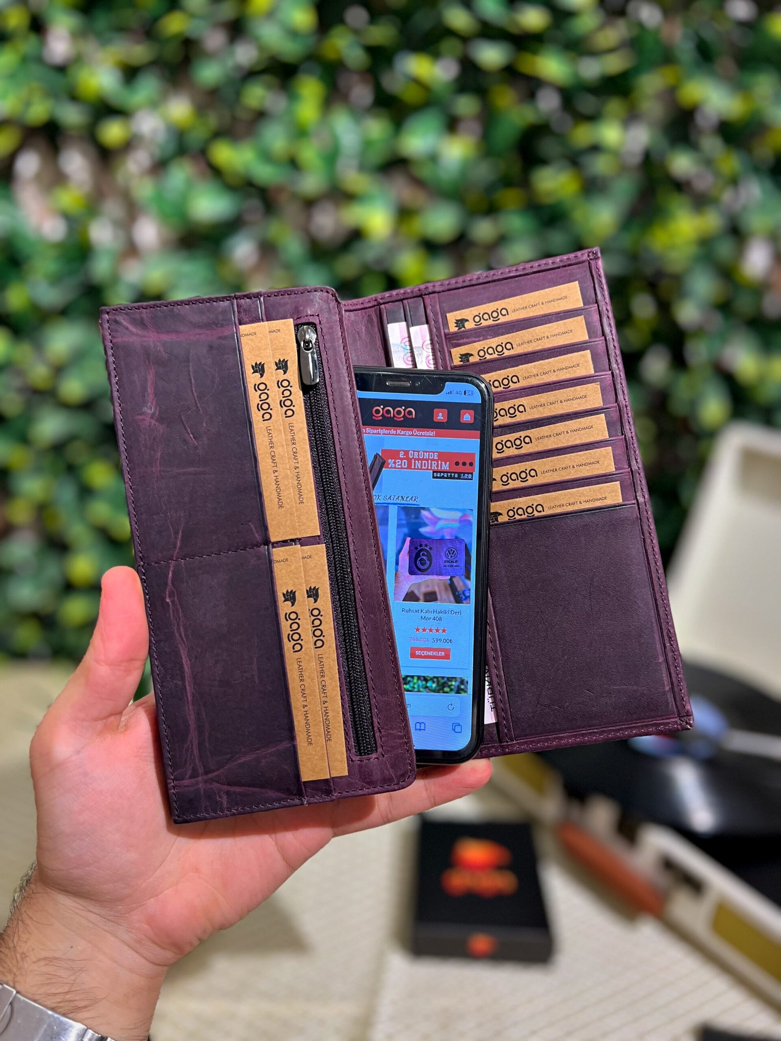 Kapaklı Telefon Bölmeli Hakiki Deri Cüzdan