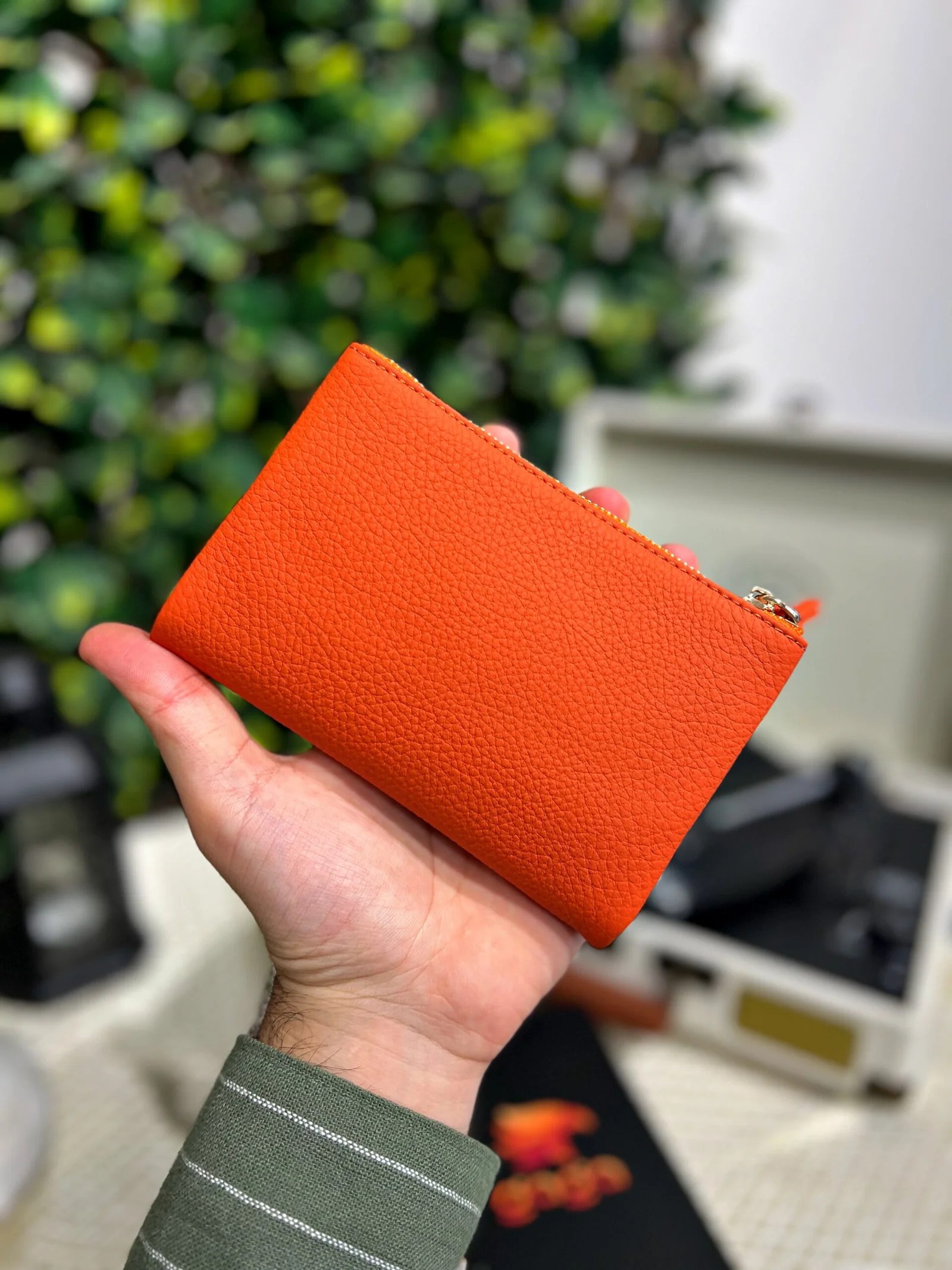 Küçük Kadın Cüzdan Turuncu Hakiki Deri 1064