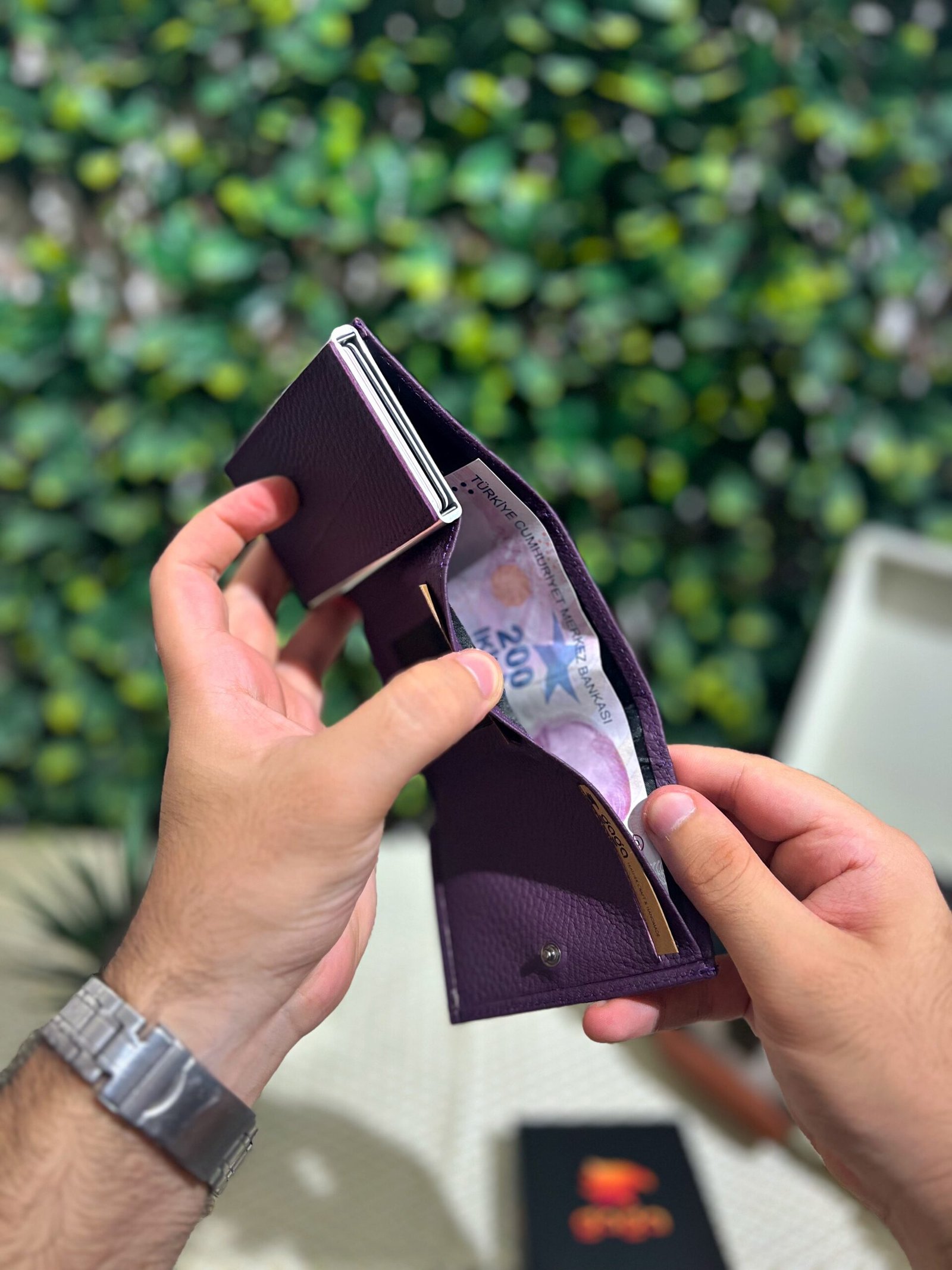 Mekanizmalı Cüzdan Hakiki Deri Mor 1001