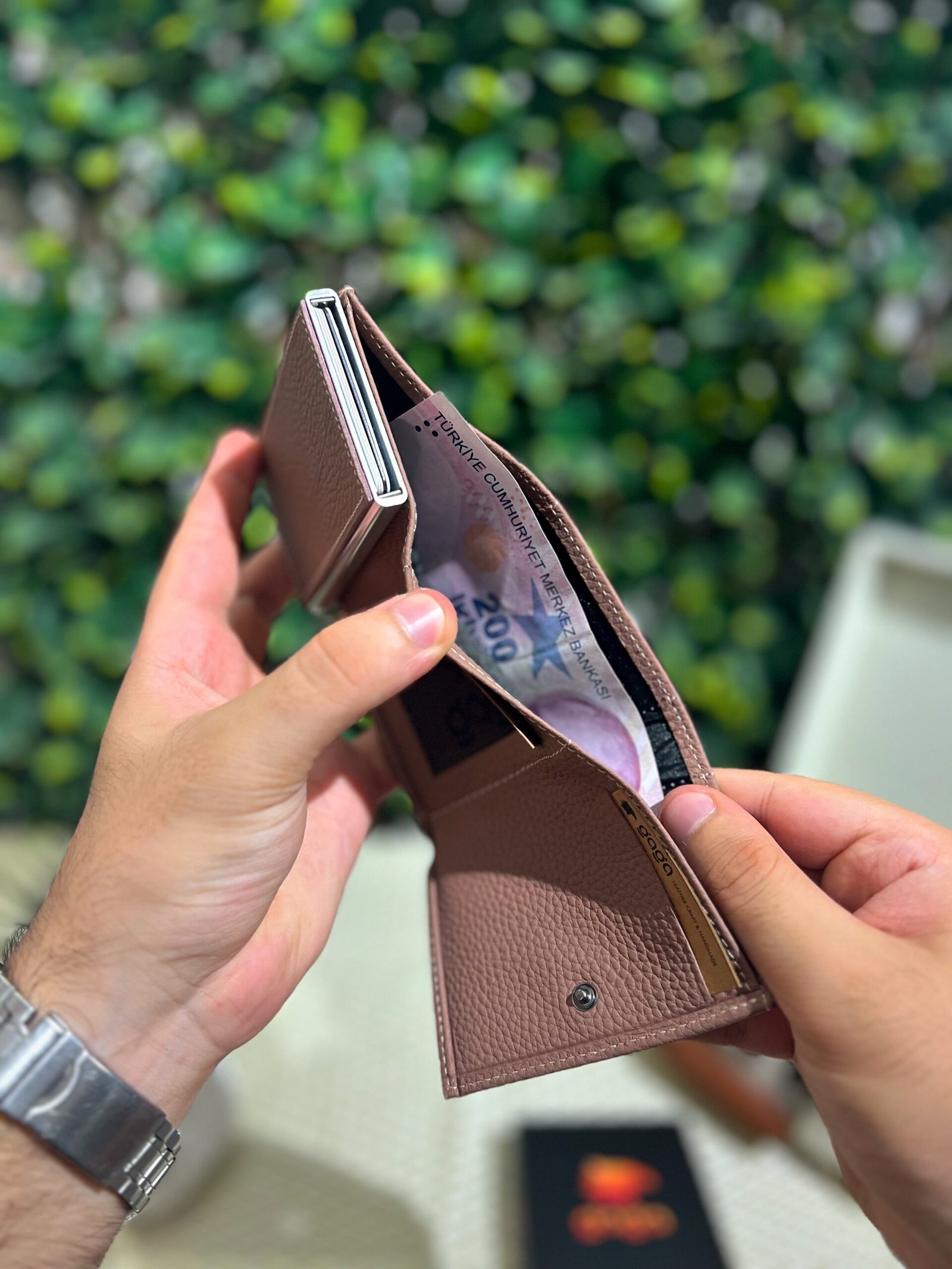Mekanizmalı Cüzdan Hakiki Deri Pudra 1001