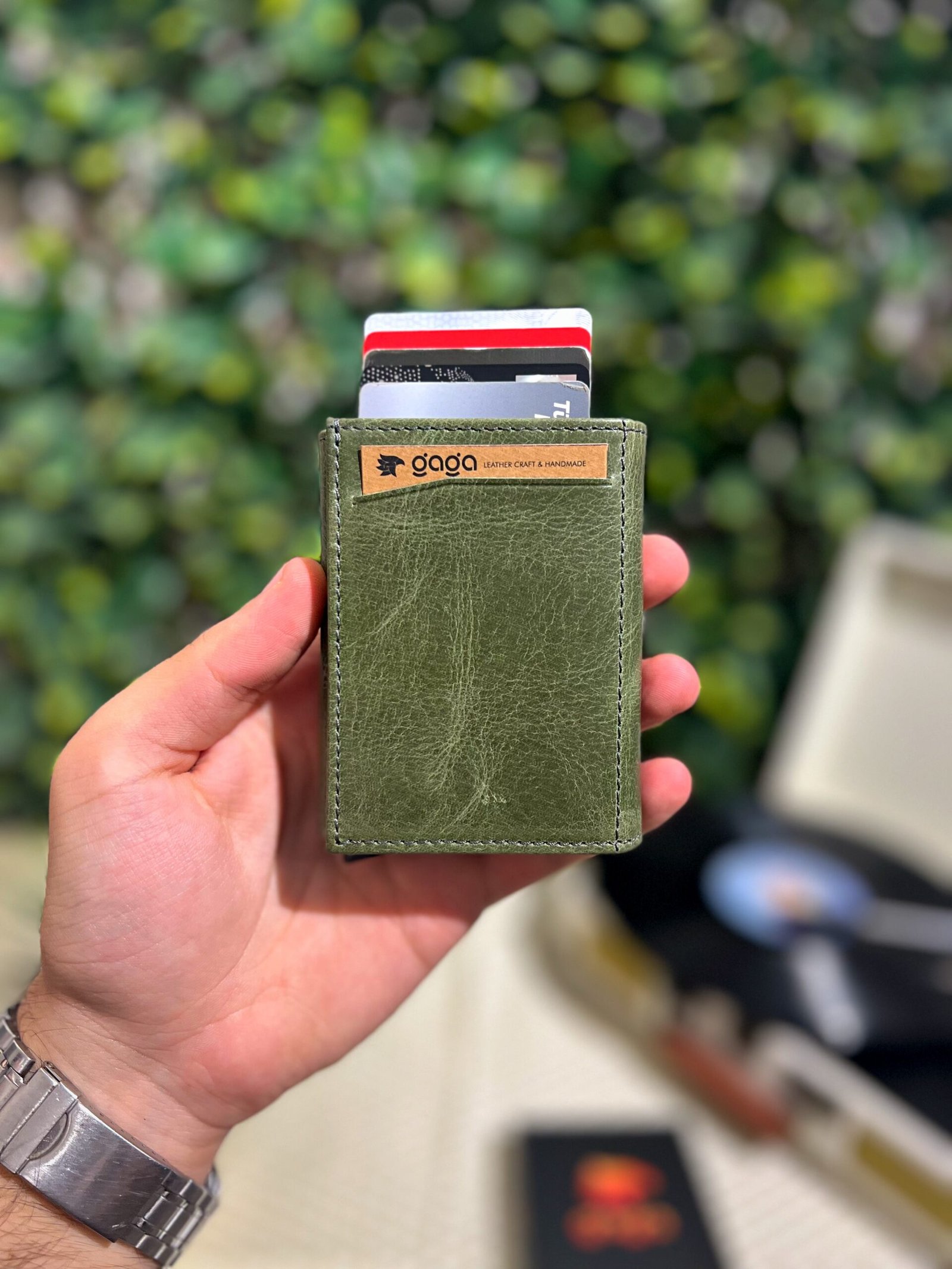 Mekanizmalı Cüzdan Hakiki Deri Yeşil 1001