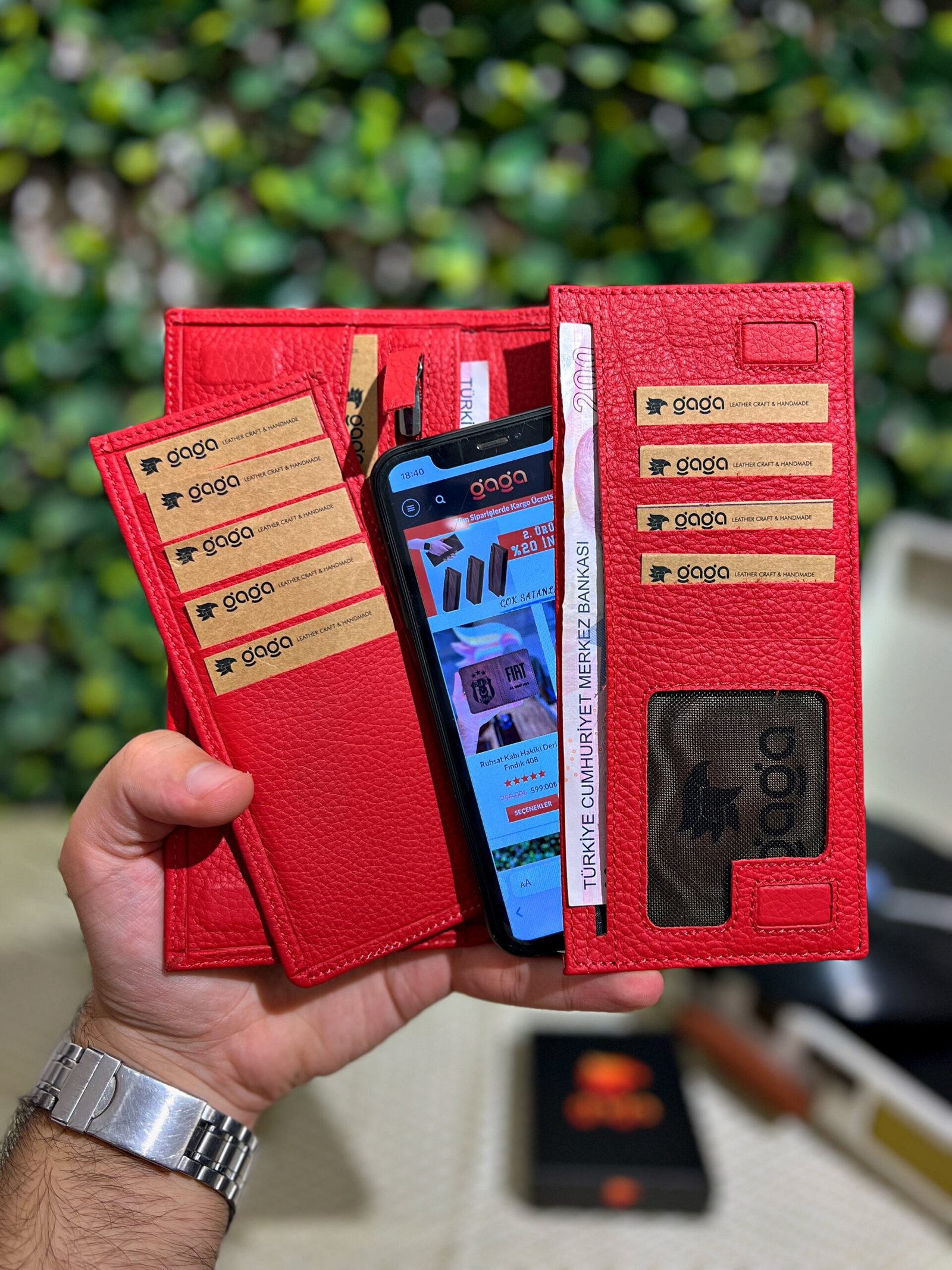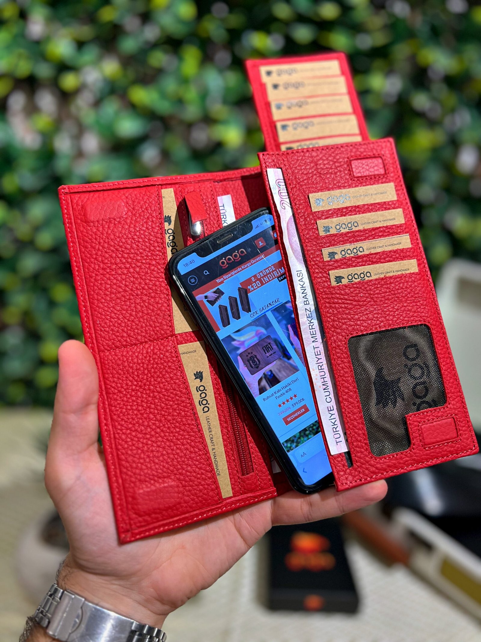 Telefon Bölmeli Mıknatıslı Cüzdan + Kartlık Kırmızı 1047