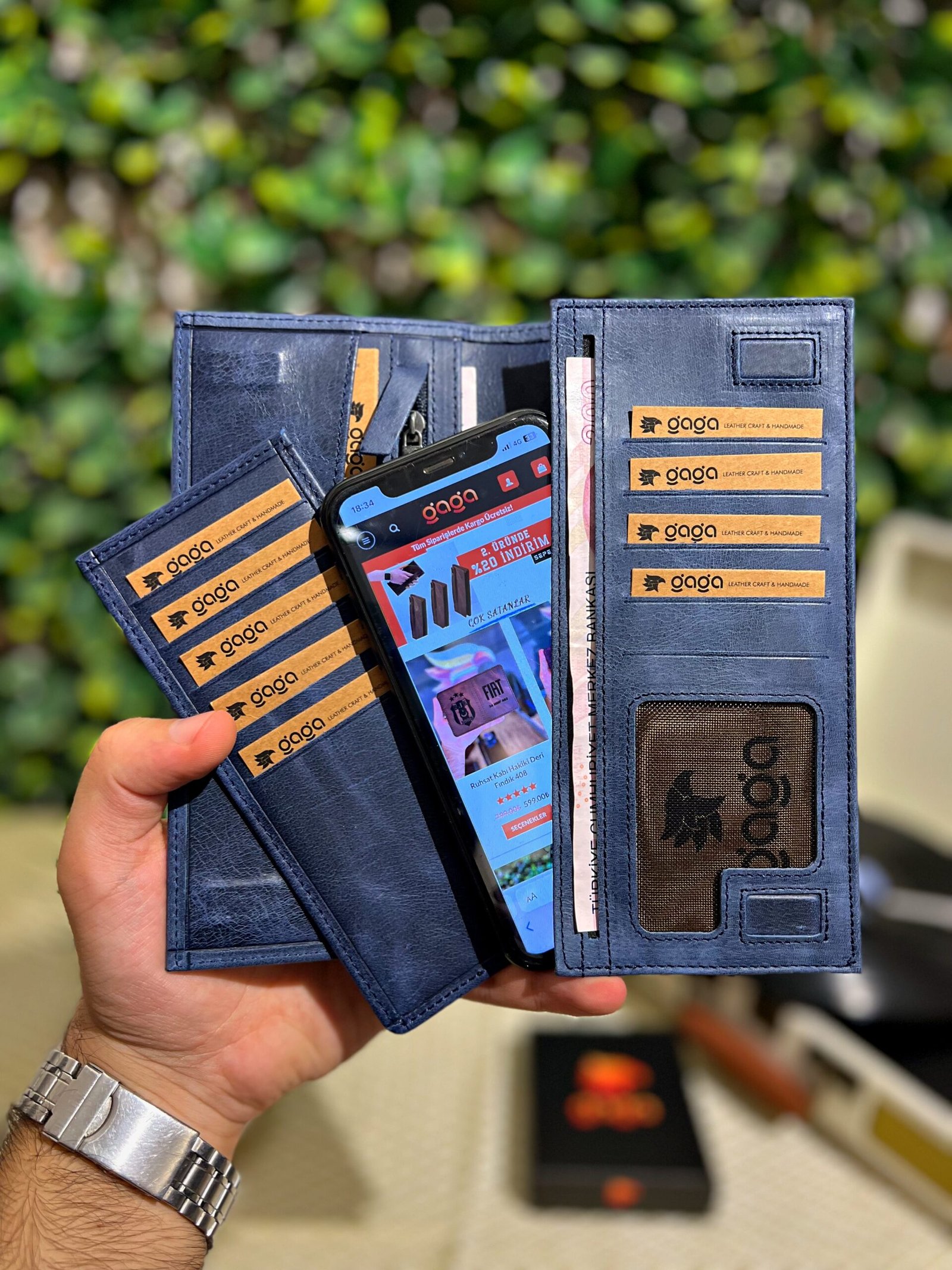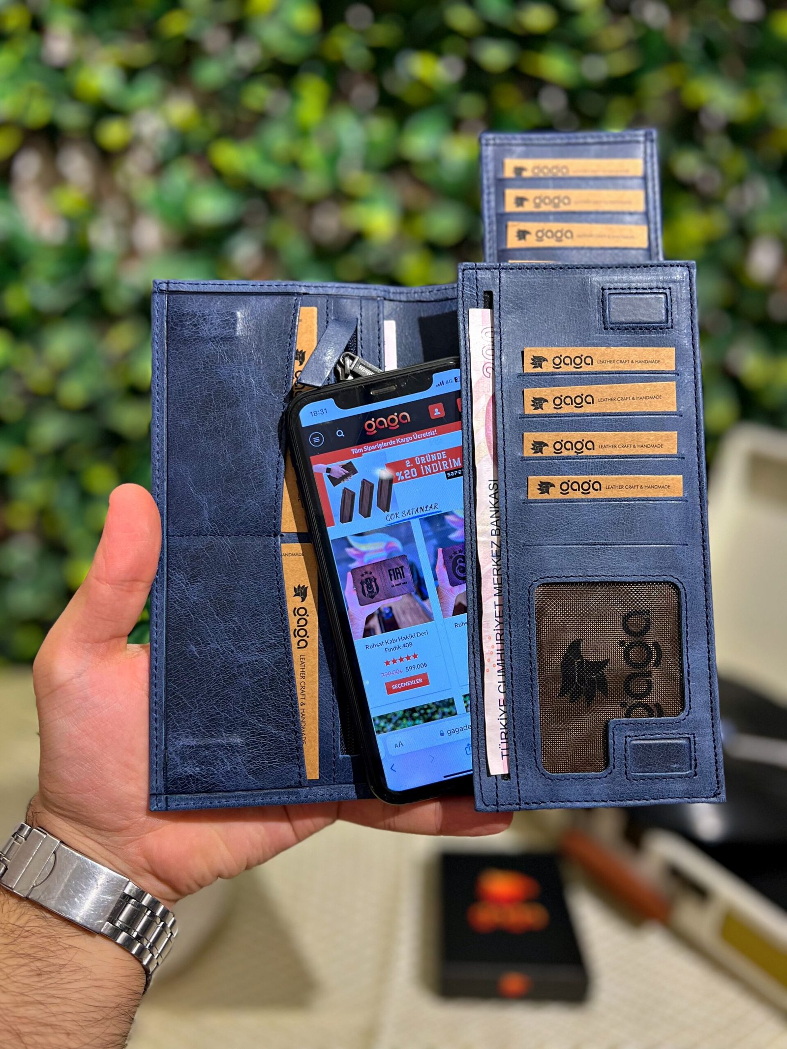 Telefon Bölmeli Mıknatıslı Cüzdan Ve Kartlık Deri