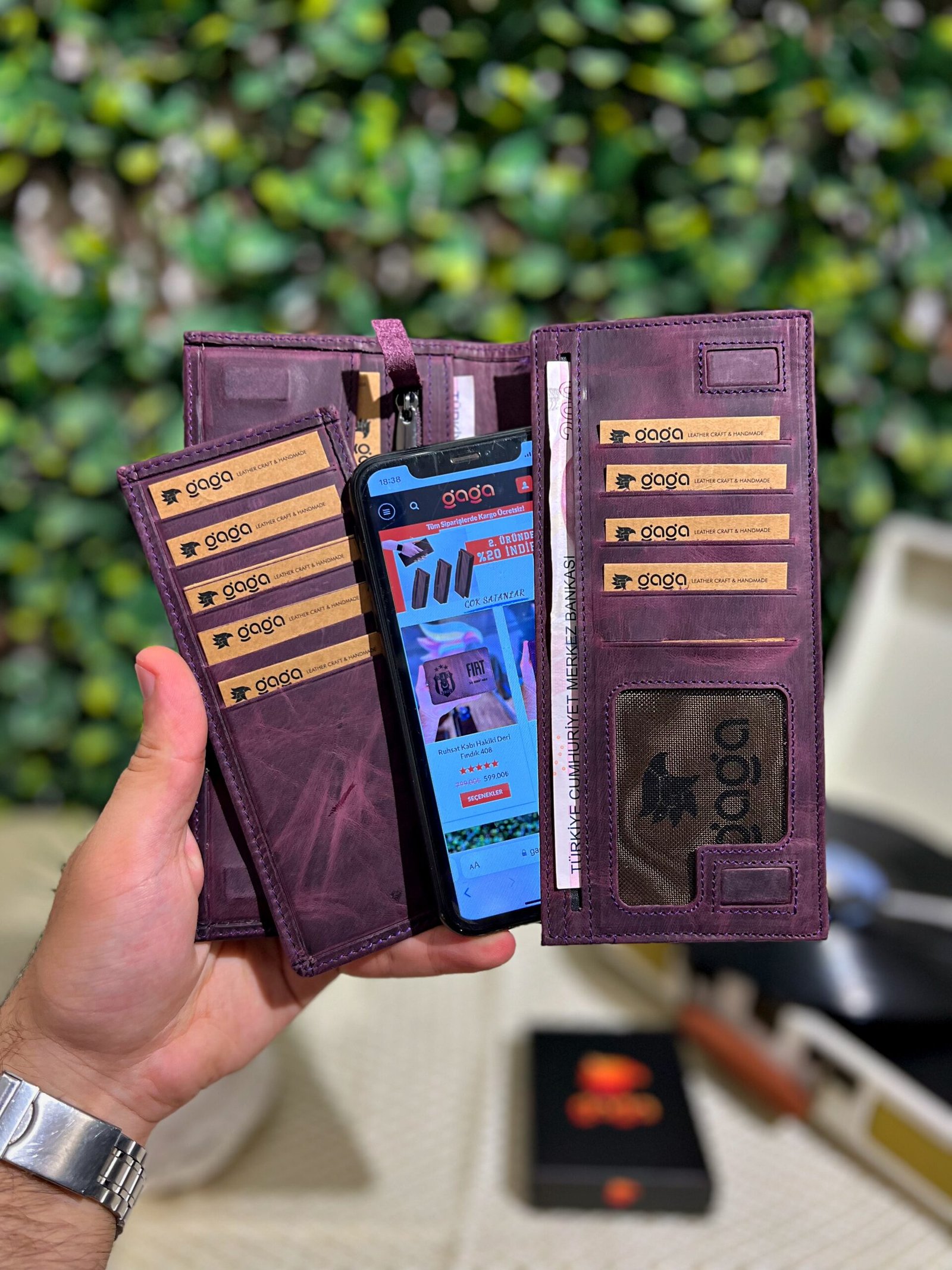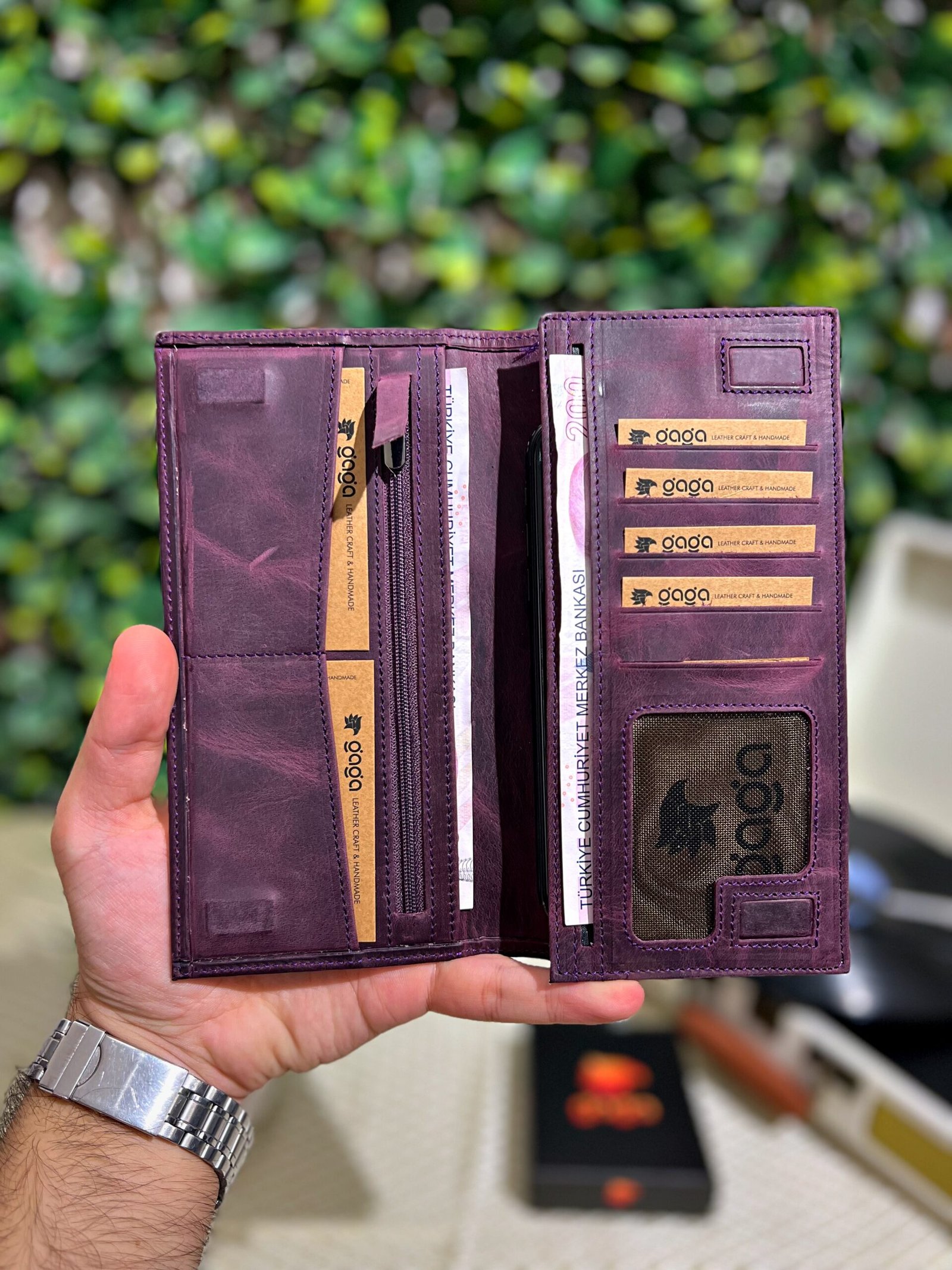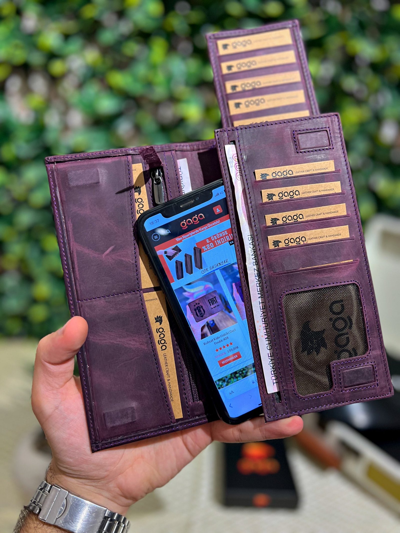 Telefon Bölmeli Mıknatıslı Cüzdan Ve Kartlık Eskitme Deri Mor 1047